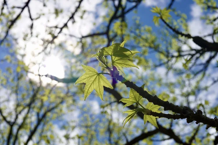 Young leaves of Liquidambar styraciflua emerging in Spring.