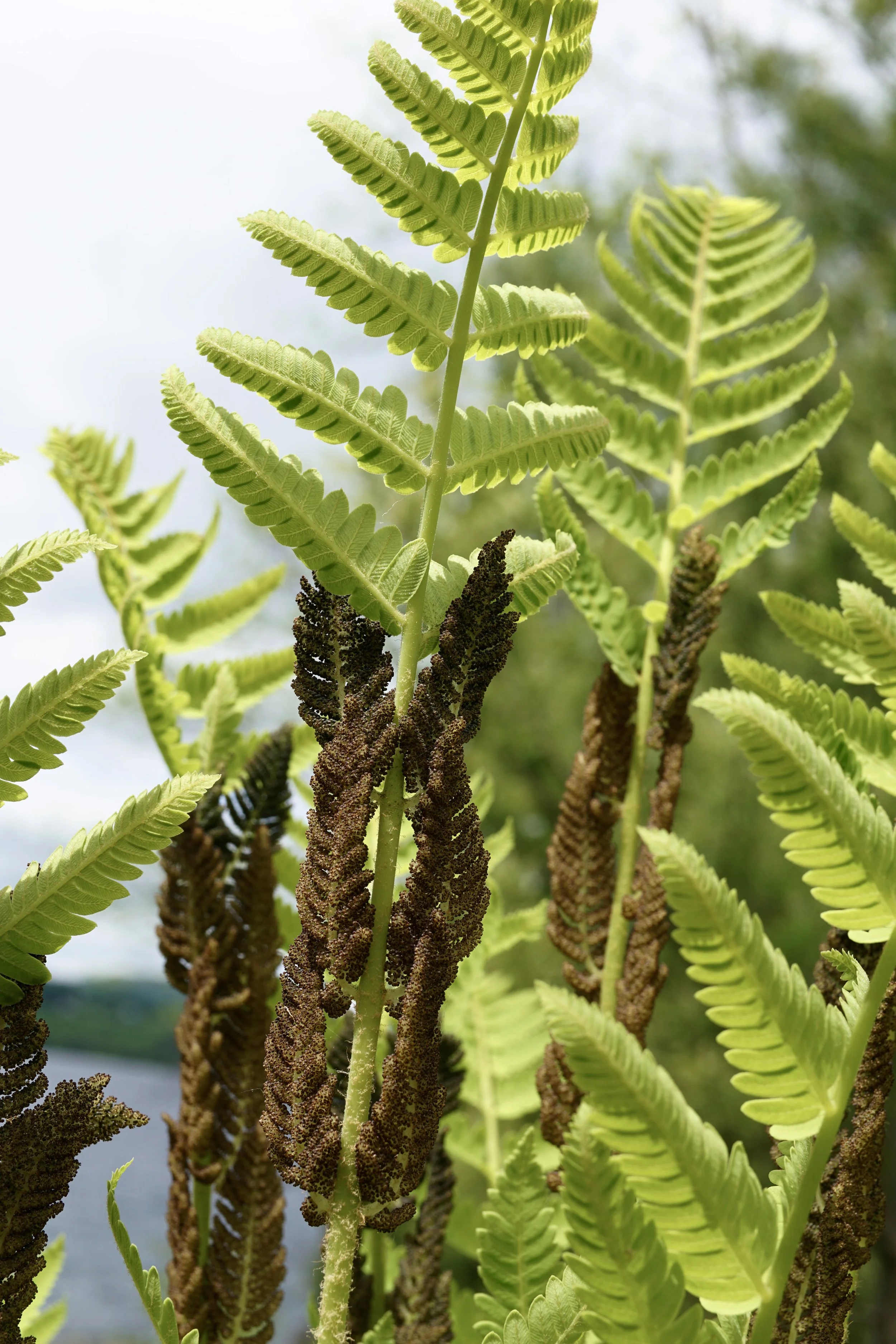Fertile fronds of interrupted fern (Claytosmunda claytoniana), showing fertile leaflets sandwiched by sterile leaflets.