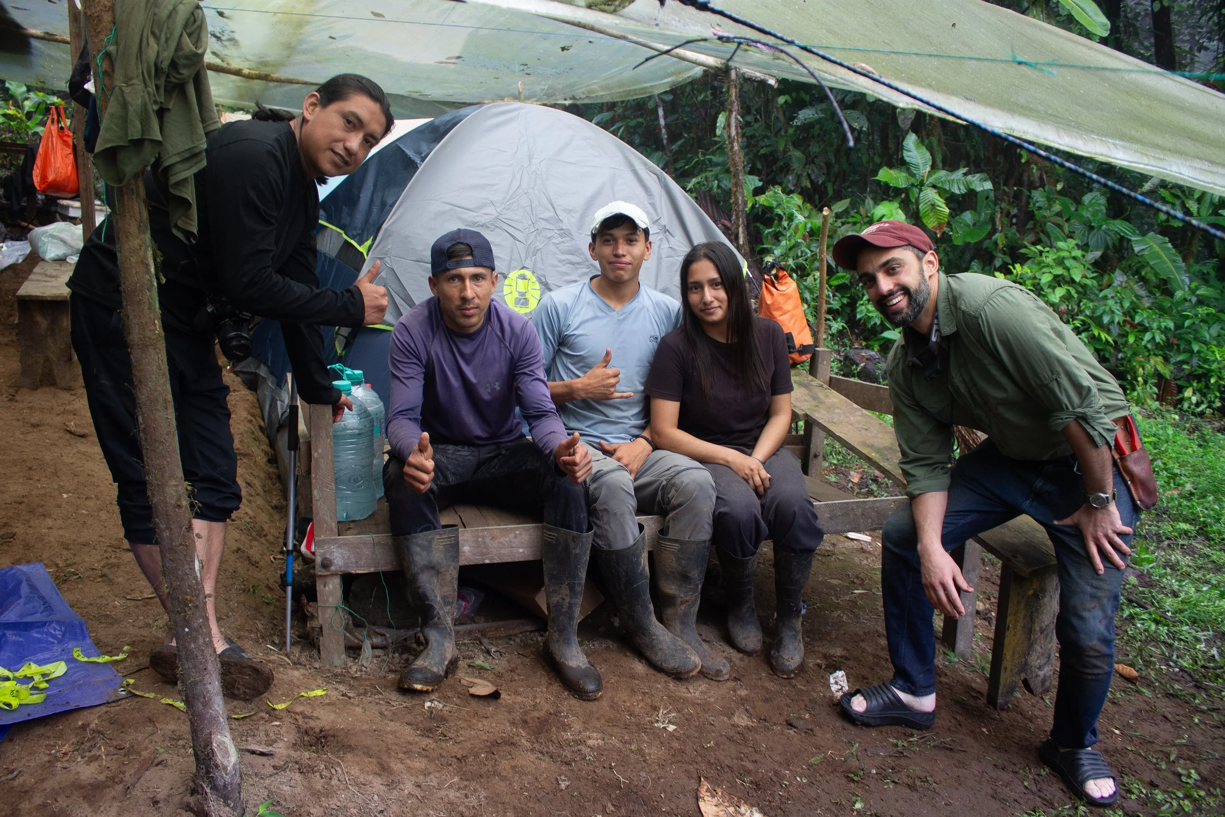 Our guides Mark, Ronal, Jimmy, Lady, and I hanging out at our campsite in Reserva Río Manduriacu.