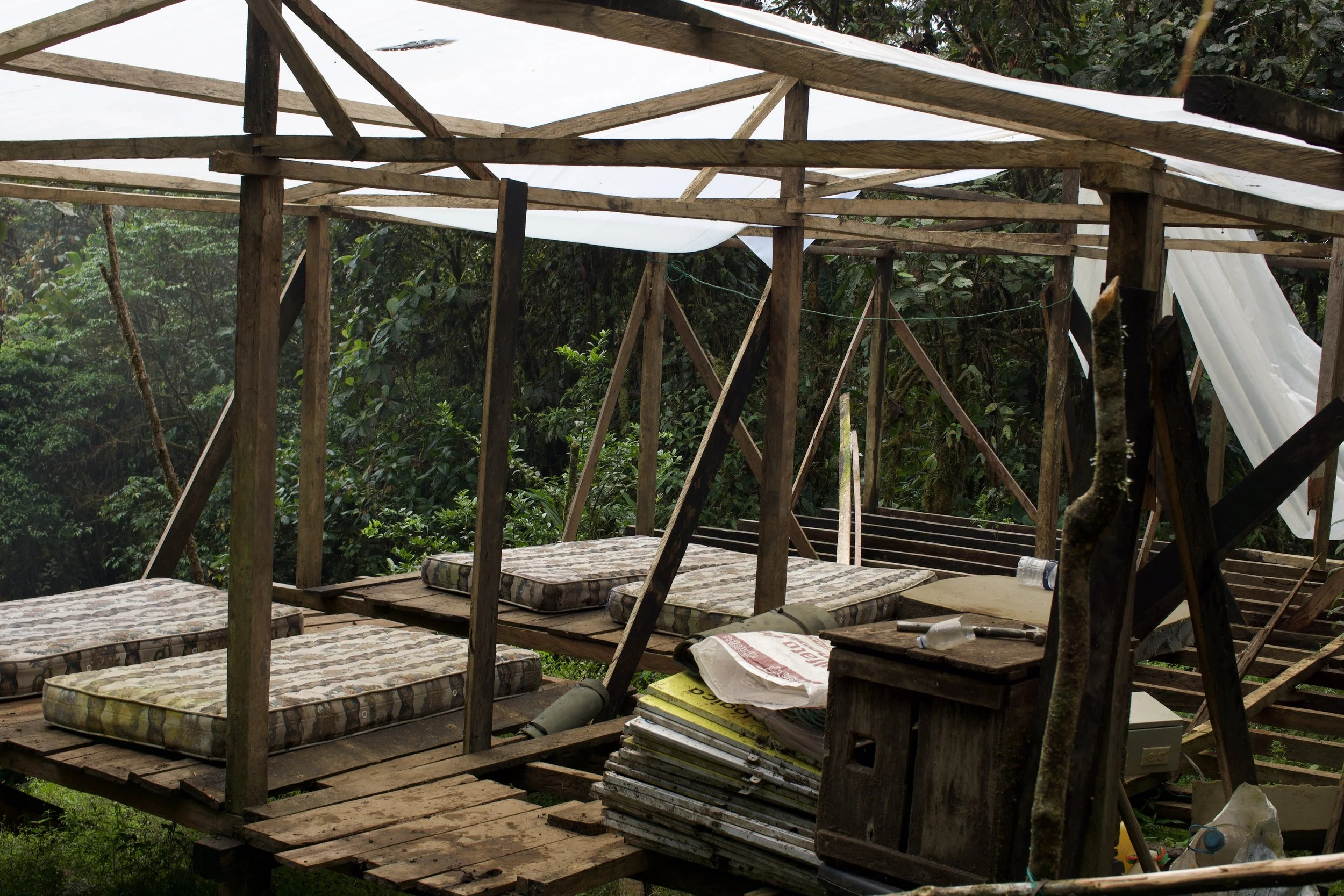 We thought our site would be open and that we would be constantly rained on. But to our surprise the site had several tarp-roofs which made everything relatively dry and easy. There was one platform that was the remnant of an old house that was built there by the previous owner of the land. All that was left was the foundation—the forest took the rest. We also had some old mattresses that were splayed out on the foundation. They were moldy and moss-covered but we put our tents on top of them and it made for a quite comfortable stay. The floor was full of holes. In fact, Jimmy was actively adding floor boards with a hammer when we arrived.