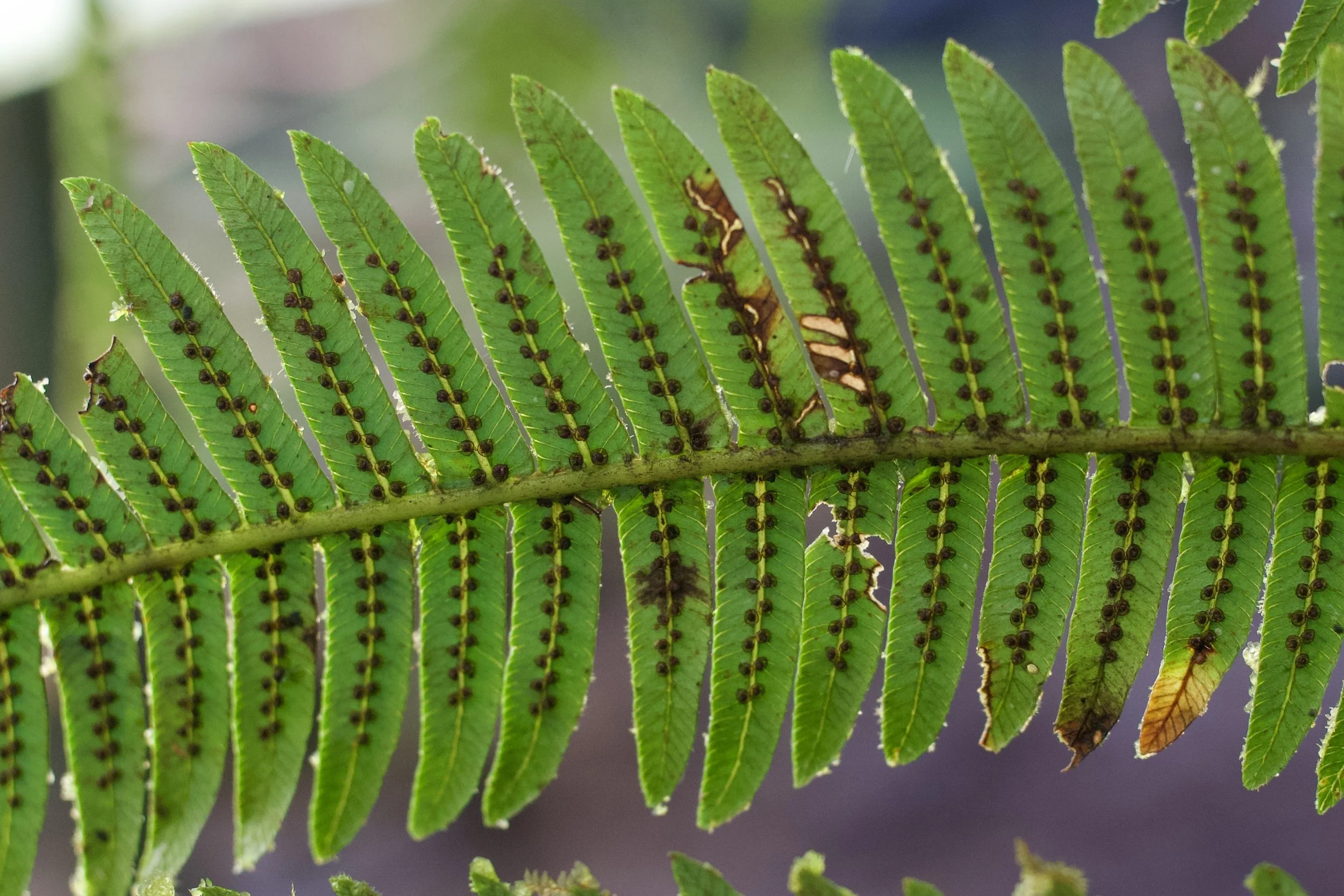 Leaf underside showing the beautiful sori (where spores are produced) of Alsophila esmeraldensis.