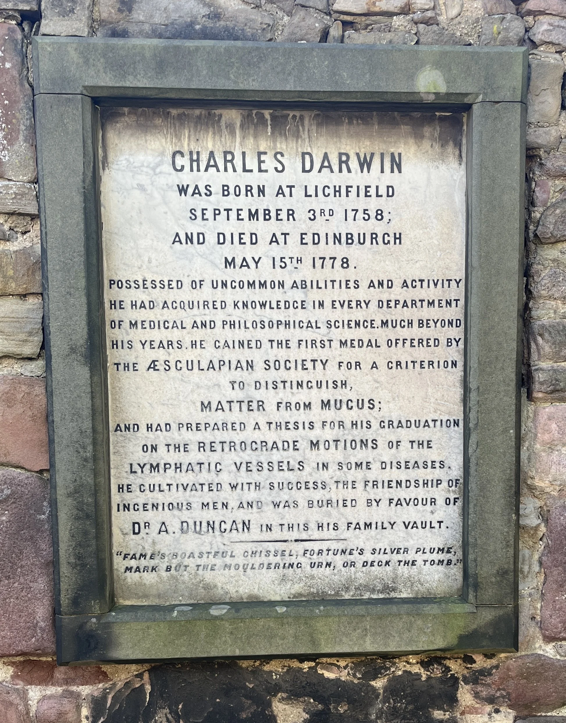 The grave stone of Charles Darwin, the uncle of our famous Charles Darwin.